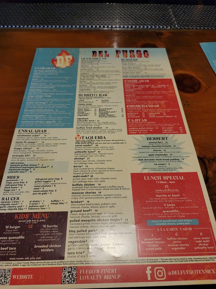 Del Fuego Menu